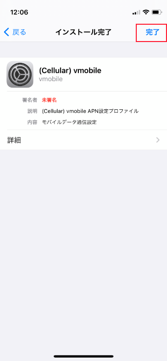 構成ファイルのインストール中に携帯電話のパスワード入力が必要な場合がございます。